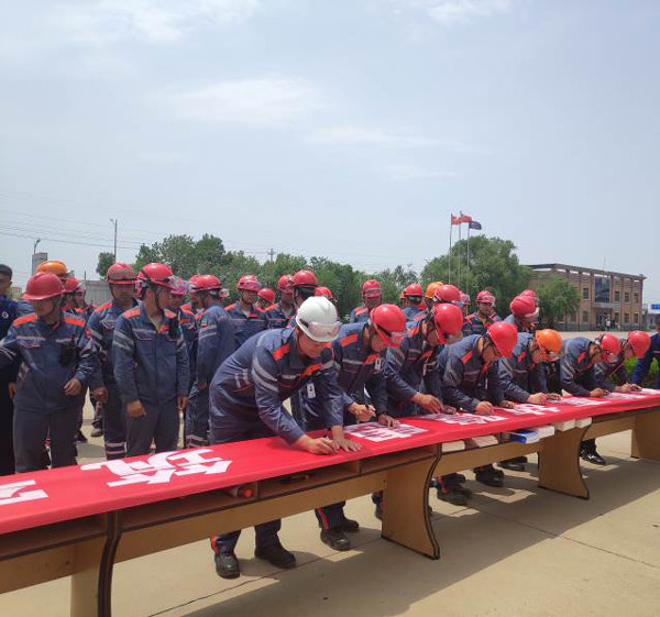 在安全總監任學成的領誓下,公司總經理及各車間(部門)管理人員進行安全宣誓活動。活動鄭重承諾及時消除事故隱患,認真築牢安全防線,嚴(yan) 格執行公司安全紅線條款、方針、原則,保證安全生產(chan) 。