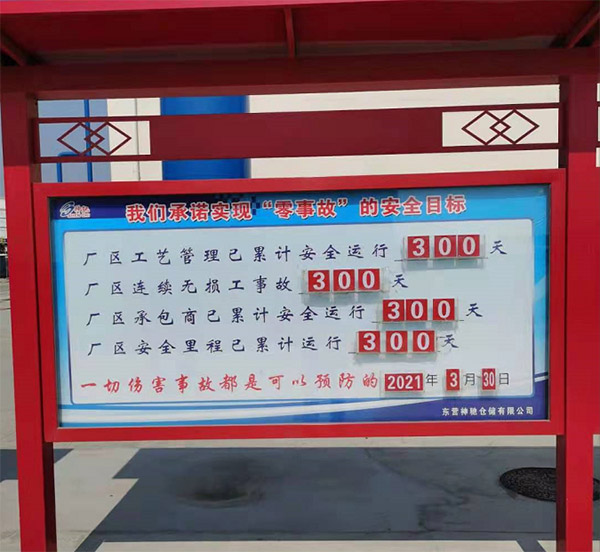倉(cang) 儲(chu) 公司現階段已經實現2期安全裏程碑,累計安全運行300天,第二期安全裏程碑的順利達成,意味著又一個(ge) 階段性的勝利,是我們(men) 渴望安全,守護安全的體(ti) 現,充分展示了公司對安全事故“零”目標的執著追求。