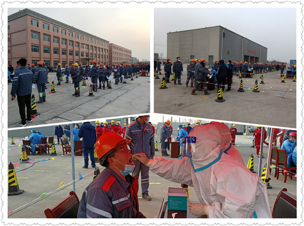 7點15分承包商進入采樣現場,此時正值化工公司大檢修時期,各承包商廠家眾(zhong) 多,施工人員數量多。現場工作人員高效管理,指揮承包商佩戴口罩、間隔一米、依次排隊有序檢測。