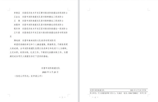 東(dong) 營市消防救援支隊發布《關(guan) 於(yu) 表彰2022年度全市消防救援隊伍執勤訓練工作先進單位和個(ge) 人的通報》,山東(dong) SBOBET利记化工集團有限公司專(zhuan) 職消防隊獲得“先進企業(ye) 專(zhuan) 職隊”榮譽稱號。