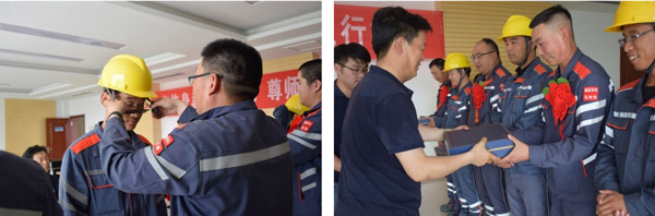為(wei) 感謝師傅們(men) 的辛苦付出和辛勤培養(yang) ,徒弟們(men) 向師傅們(men) 鞠躬感謝。