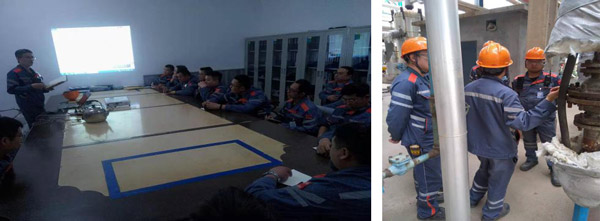 車間所有管理層深入一線,以身作則,針對現場的跑冒滴漏及各種“低老壞”現象,親(qin) 自上手,高標準的帶領職工消除現場存在的各項安全隱患,“領導走過的痕跡,就是員工的標準”,得到了最好的詮釋。