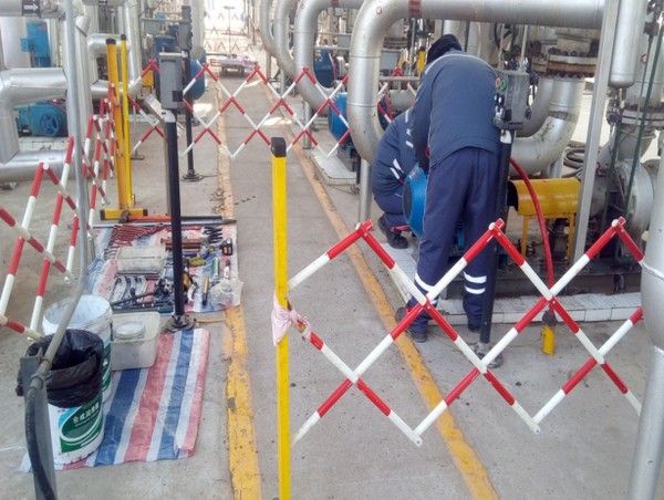巡檢整個(ge) 車間屬地現場,隨處可見的是高標準的作業(ye) 防護措施,防護到位的作業(ye) 人員,精神飽滿認真負責的監護人。上鎖掛簽、盲板隔離、五點雙鉤安全帶、現場交底、現場審批作業(ye) 票、安全官現場輔導審核、安全觀察與(yu) 溝通……各類安全措施為(wei) 現場作業(ye) 保駕護航,讓屬地管理和作業(ye) 人員感受到的是一種安全氛圍和安全作業(ye) 環境,讓“安全第一,預防為(wei) 主”的方針政策在現場落地生根。