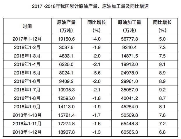 石油化工是以石油和天然氣為(wei) 原料,生產(chan) 石油產(chan) 品和石油化工產(chan) 品的加工工業(ye) 。石油化工在國民經濟發揮重要作用,是我國化學工業(ye) 的重要組成部分,我國支柱產(chan) 業(ye) 部門之一。國家統計局數據顯示,2018年原油產(chan) 量為(wei) 18907.8萬(wan) 噸,同比下降1.3%。受國內(nei) 石油開采條件影響,國內(nei) 原油產(chan) 量持續下降,但降幅較上年同期有所放緩。