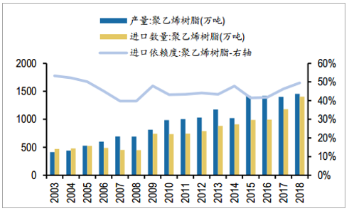 2018年底,我國聚乙烯進口依存度仍高達50%